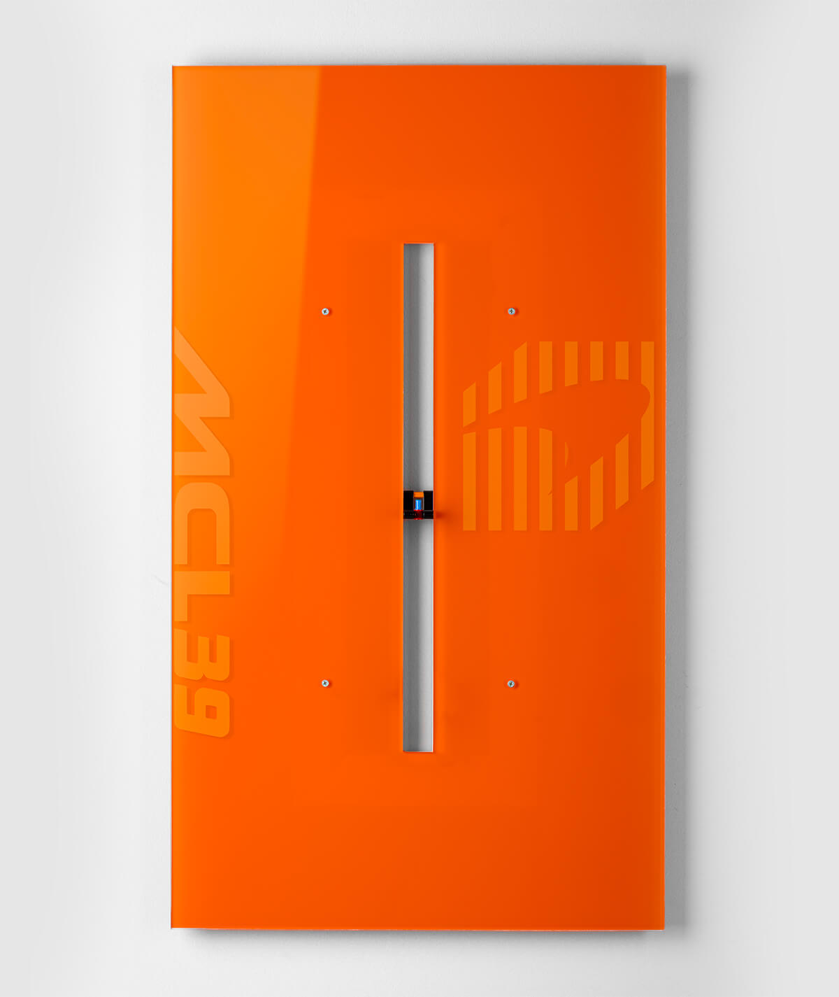 ✔ Estética Premium – Panel de metacrilato brillante de 5 mm combinado con película naranja claro de alta calidad, además de pegatinas mate exclusivas.
